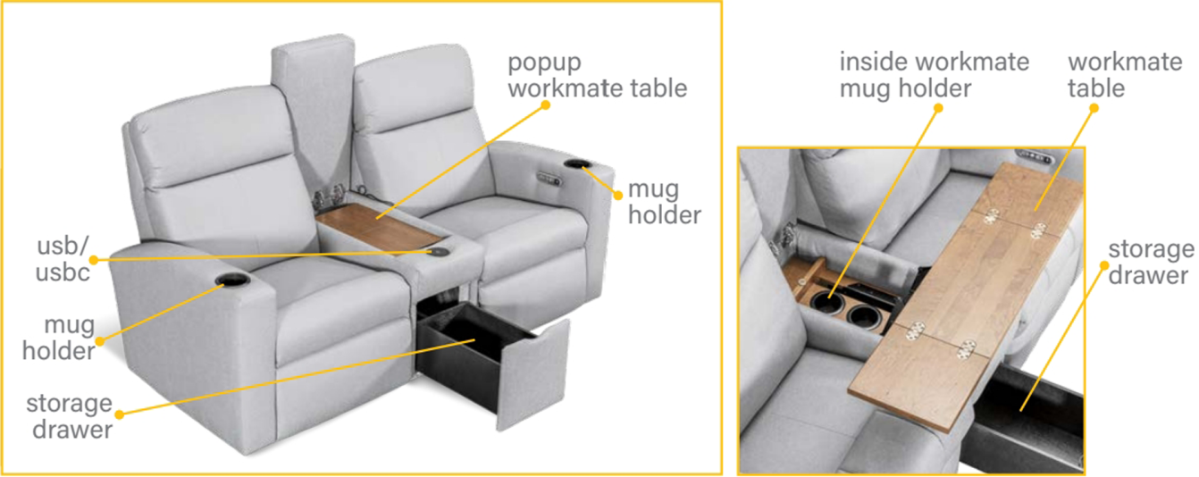 • 4 cup holders (2 cupholders in armrests - available without cupholders in the arms; smooth arms - minus 4" from width).